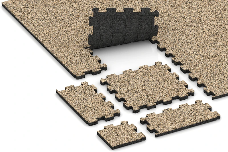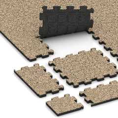 Die meisten WARCO-Klickfliesen in der Regel aus SBR-Gummigranulat, das aus abgelegten Reifen gewonnen wird. Für bestimmte Farbdesigns wird auch neu hergestelltes, vollfarbiges EPDM-Gummigranulat verwendet.