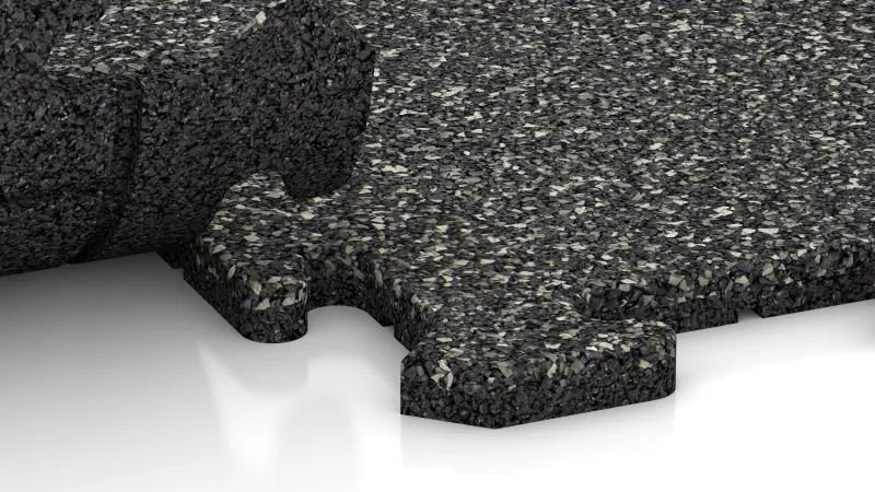 Die Puzzleverzahnung der HD-Matten ist präzise geformt. Sie verbindet die Platten dauerhaft formschlüssig zu einem lagestabilen Teppich. Durch die leicht gefasten Kanten entsteht ein dezentes, geordnetes Fugenbild. Eine Verklebung mit dem Untergrund ist in der Regel nicht erforderlich.