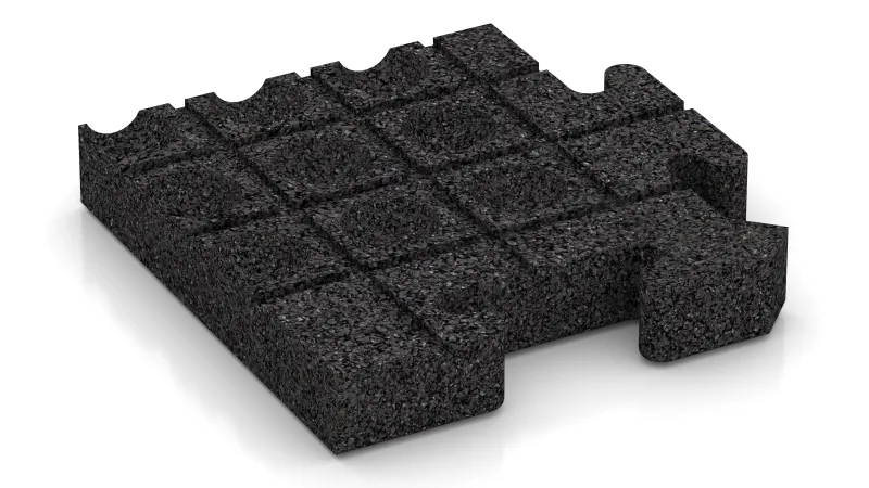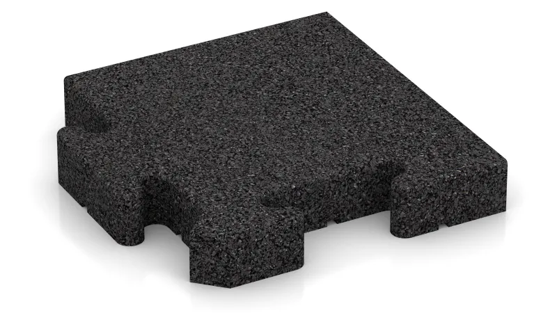 Mit der Eckplatte gelingt ein exakter, gerader Abschluss an den vier Ecken einer Plattenfläche. Jede Platte ist ein Viertel einer ganzen Puzzleplatte: Die Innenseiten verfügen über die vertraute Puzzleverzahnung und lassen sich passgenau mit den übrigen Platten verbinden, während die Außenseiten glatt und gerade verlaufen. So entsteht ein harmonischer und funktionaler Rahmen um die gesamte Fläche.