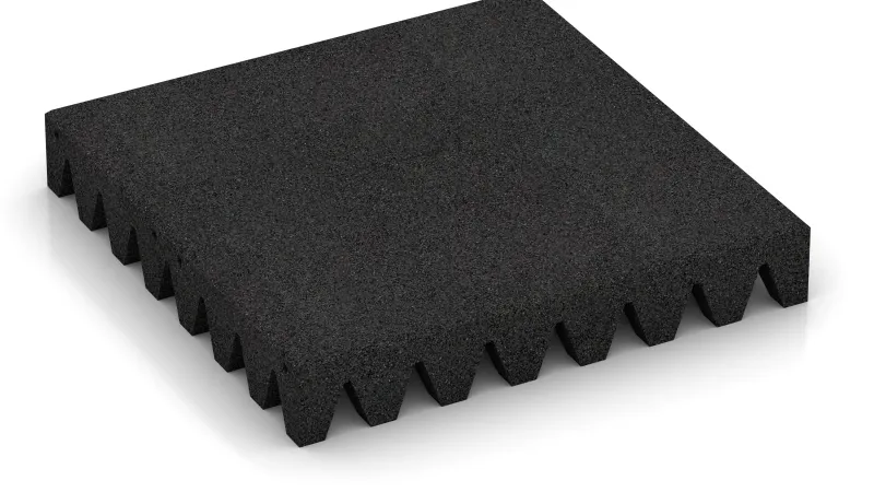 Die Platten bestehen aus PU-gebundenem Gummigranulat mit trittelastischer, griffiger Oberfläche. Dicke und Rohdichte bestimmen das Dämpfungsverhalten und damit die Fallhöhe nach EN 1177. Durch das 50 × 50 cm Raster bleiben Zuschnitte minimal, und Einzelplatten können bei Bedarf schnell getauscht werden.