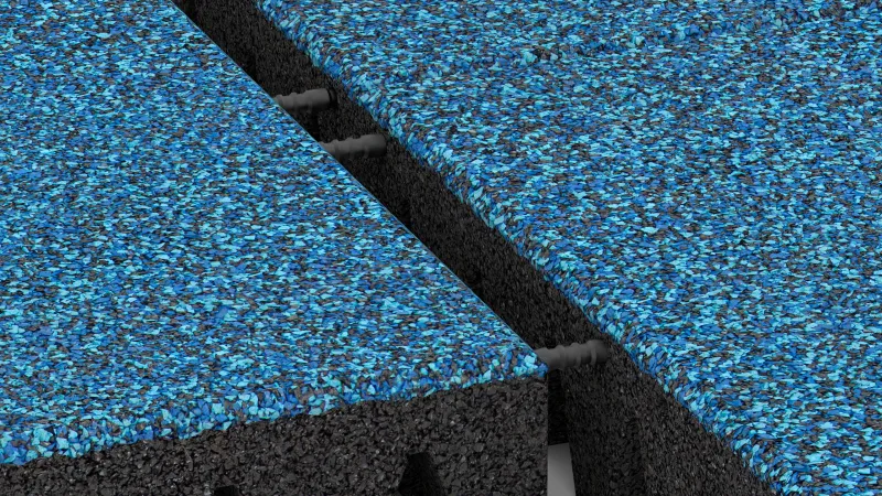 Für den Außenbereich empfiehlt WARCO eine dauerhaft stabile, wasserdurchlässige Tragschicht. Bewährt haben sich Kunststoff-Wabengitter (Kiesgitter) oder ein vorhandener, gebundener und dränfähiger Unterbau wie etwa Drainbeton. Ist die Tragschicht nicht wasserdurchlässig, muss bei witterungsexponierten Flächen ein Gefälle von mindestens 1,5 % zur Entwässerung eingeplant werden. Eine Verlegung auf Schüttgütern wie Sand, Splitt oder Kies ist nicht zu empfehlen – sie verlagern sich unter elastischen Platten und führen zu Instabilität.