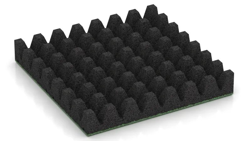 Die Platten bestehen aus PU-gebundenem Gummigranulat mit trittelastischer, griffiger Oberfläche. Dicke und Rohdichte bestimmen das Dämpfungsverhalten und damit die Fallhöhe nach EN 1177. Durch das 50 × 50 cm Raster bleiben Zuschnitte minimal, und Einzelplatten können bei Bedarf schnell getauscht werden.