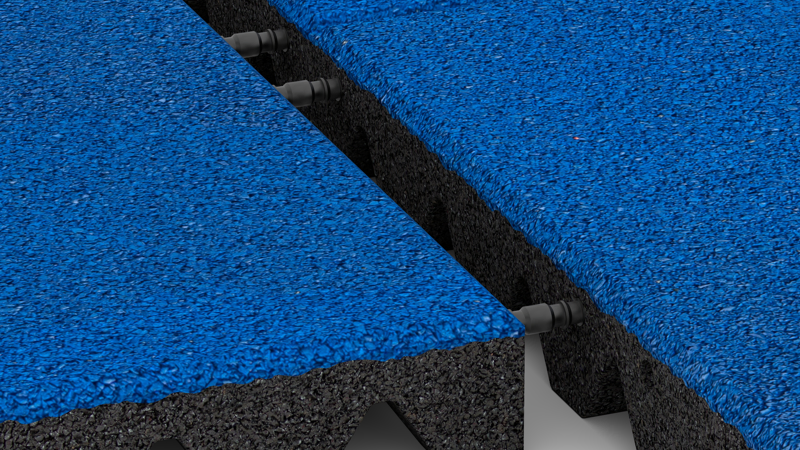 Je nach Ausführung werden die Matten und Platten im Halbverband oder Kreuzverband verlegt. WARCO bietet zwei Verbindungssysteme: Kunststoffdübel oder formschlüssige Puzzle-Verzahnungen. Besonders die Puzzle-Verzahnung verhindert zuverlässig ein Auseinanderdriften der Fläche und sorgt für dauerhafte Lagestabilität.