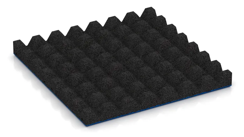 Die Platten bestehen aus PU-gebundenem Gummigranulat mit trittelastischer, griffiger Oberfläche. Dicke und Rohdichte bestimmen das Dämpfungsverhalten und damit die Fallhöhe nach EN 1177. Durch das 50 × 50 cm Raster bleiben Zuschnitte minimal, und Einzelplatten können bei Bedarf schnell getauscht werden.