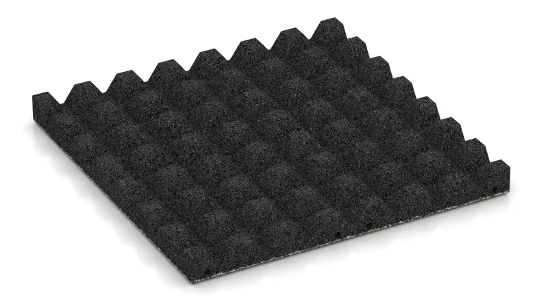 Die Platten bestehen aus PU-gebundenem Gummigranulat mit trittelastischer, griffiger Oberfläche. Dicke und Rohdichte bestimmen das Dämpfungsverhalten und damit die Fallhöhe nach EN 1177. Durch das 50 × 50 cm Raster bleiben Zuschnitte minimal, und Einzelplatten können bei Bedarf schnell getauscht werden.