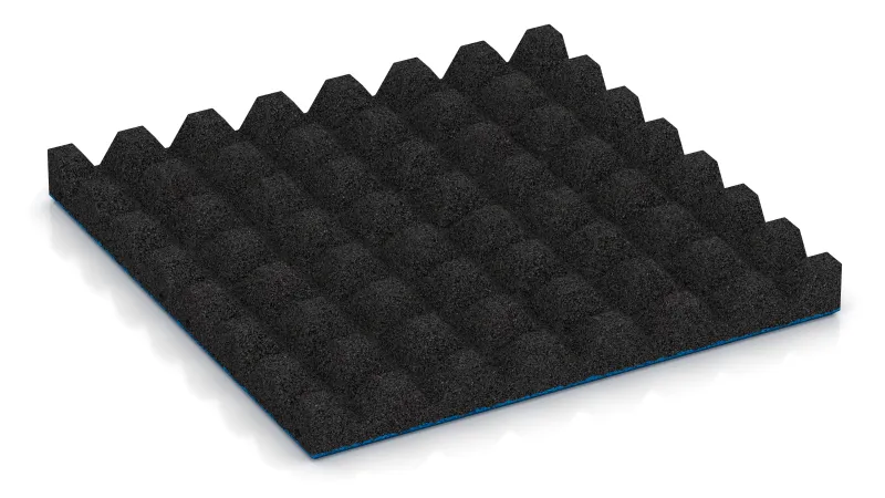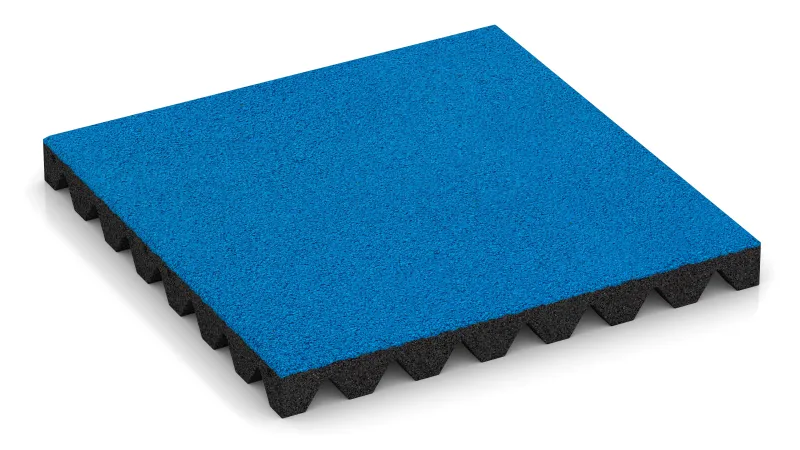 Die Platten bestehen aus PU-gebundenem Gummigranulat mit trittelastischer, griffiger Oberfläche. Dicke und Rohdichte bestimmen das Dämpfungsverhalten und damit die Fallhöhe nach EN 1177. Durch das 50 × 50 cm Raster bleiben Zuschnitte minimal, und Einzelplatten können bei Bedarf schnell getauscht werden.