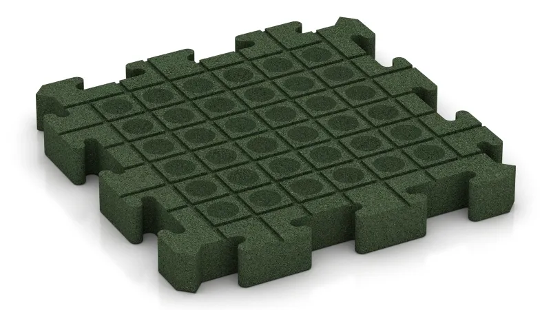 Jede Matte ist mit einer präzise geformten Puzzleverzahnung ausgestattet, die sich leicht und passgenau verbinden lässt. Die umlaufende Fase sorgt dabei für ein sauberes, geordnetes Fugenbild und verleiht der Fläche eine hochwertige Optik. So entsteht ein stabiler, formschlüssiger Plattenteppich.