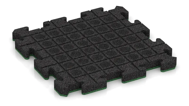 Die Matten bestehen aus PU-gebundenem Gummigranulat und sind in den Stärken 3, 4 oder 5 cm erhältlich. Sie federn Bewegungen zuverlässig ab, reduzieren Vibrationen und mindern Geräusche. Gelenke, Sehnen und Bänder werden spürbar entlastet, während der Untergrund zuverlässig geschützt wird.