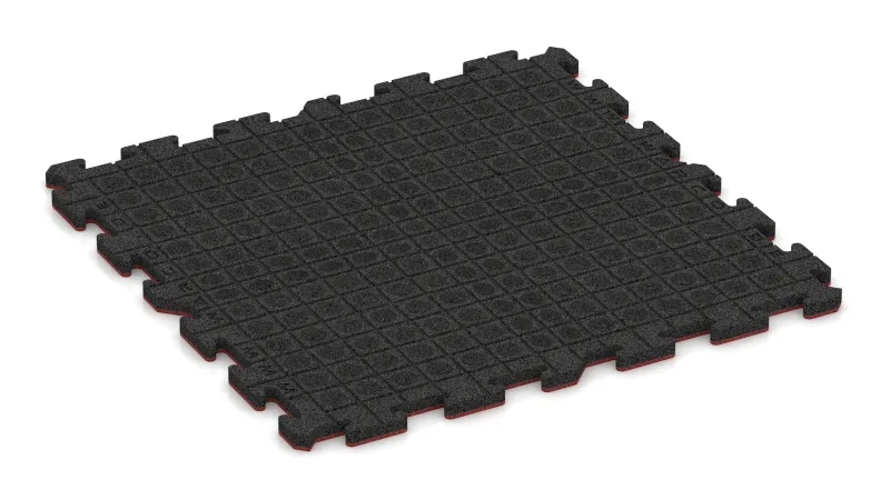 Jede Matte ist mit einer präzise geformten Puzzleverzahnung ausgestattet, die sich leicht und passgenau verbinden lässt. Die umlaufende Fase sorgt dabei für ein sauberes, geordnetes Fugenbild und verleiht der Fläche eine hochwertige Optik. So entsteht ein stabiler, formschlüssiger Plattenteppich.