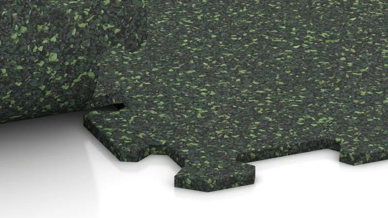 Die Platten entstehen, indem Rohlinge im Überformat aus PU-gebundenem ELT-Gummigranulat gefertigt und nach einer Reife- und Abkühlphase mittig gespalten werden. Das Ergebnis sind besonders dünne Fitnessplatten mit einer typischen Gummi-Oberfläche, die nahezu geschlossen wirkt und Schmutz sowie Feuchtigkeit kaum eindringen lässt.