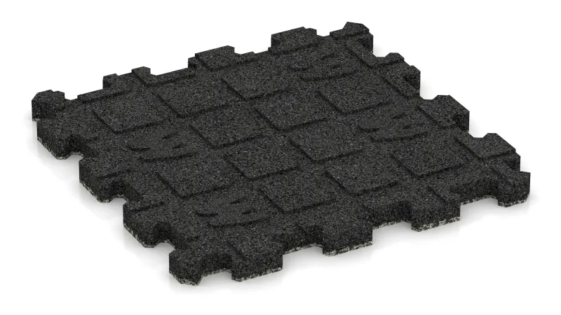 Zwei Plattenseiten verfügen über ein positives Zahnprofil, zwei über ein passendes negatives. Beim Verlegen greifen die Platten von unten formschlüssig ineinander und bilden eine dauerhafte, mechanisch sichere Verbindung. Von oben ergibt sich ein geschlossenes, fugenbündiges Erscheinungsbild mit gleichmäßiger Geometrie, das meist die Form eines klassischen Schachbrettmusters hat.