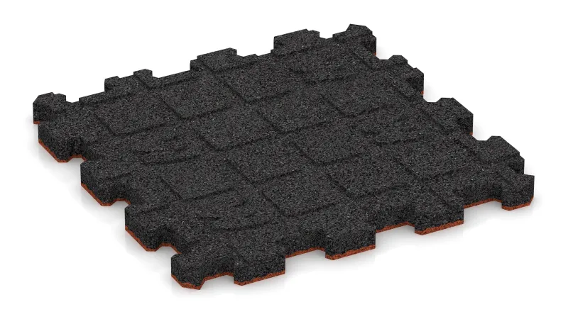 Zwei Plattenseiten verfügen über ein positives Zahnprofil, zwei über ein passendes negatives. Beim Verlegen greifen die Platten von unten formschlüssig ineinander und bilden eine dauerhafte, mechanisch sichere Verbindung. Von oben ergibt sich ein geschlossenes, fugenbündiges Erscheinungsbild mit gleichmäßiger Geometrie, das meist die Form eines klassischen Schachbrettmusters hat.