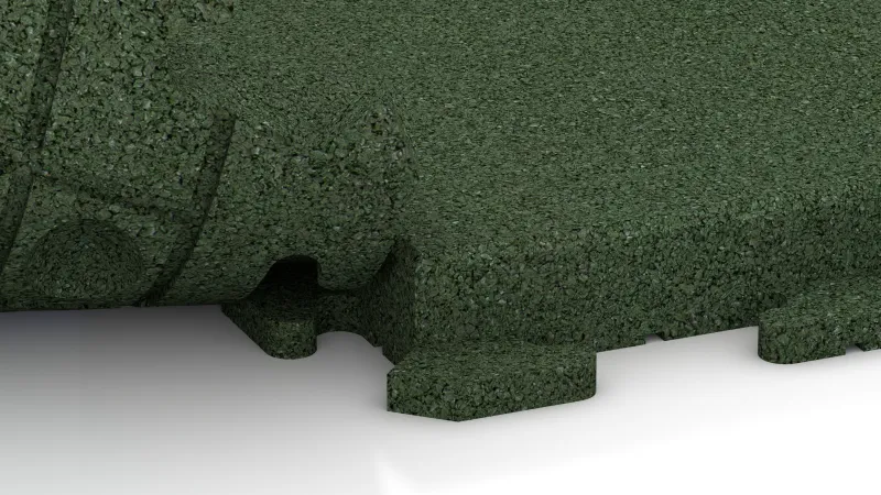 Die Platte besteht aus PU-gebundenem ELT-Gummigranulat, das aus dem Recycling gebrauchter Reifen stammt. Optional ist eine Variante mit einer farbigen Nutzschicht aus durchgefärbtem und UV-beständigem EPDM-Gummigranulat erhältlich. Beide Materialausführungen sind dauerhaft elastisch, robust und umweltfreundlich. Die Oberfläche ist rutschhemmend, trittelastisch und wasserdurchlässig – Regenwasser kann ungehindert in den Untergrund versickern. Dadurch wird der Boden nicht versiegelt, das natürliche Gleichgewicht des Bodens bleibt erhalten und Vegetation oder Baumwurzeln werden nicht beeinträchtigt.