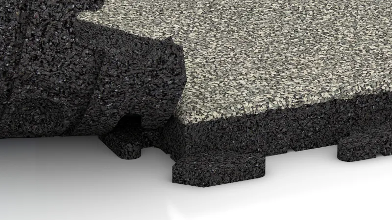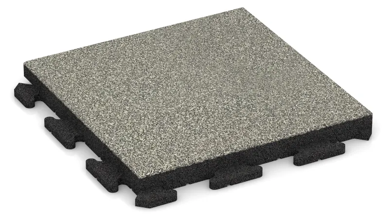Die Platte besteht aus PU-gebundenem ELT-Gummigranulat, das aus dem Recycling gebrauchter Reifen stammt. Optional ist eine Variante mit einer farbigen Nutzschicht aus durchgefärbtem und UV-beständigem EPDM-Gummigranulat erhältlich. Beide Materialausführungen sind dauerhaft elastisch, robust und umweltfreundlich. Die Oberfläche ist rutschhemmend, trittelastisch und wasserdurchlässig – Regenwasser kann ungehindert in den Untergrund versickern. Dadurch wird der Boden nicht versiegelt, das natürliche Gleichgewicht des Bodens bleibt erhalten und Vegetation oder Baumwurzeln werden nicht beeinträchtigt.