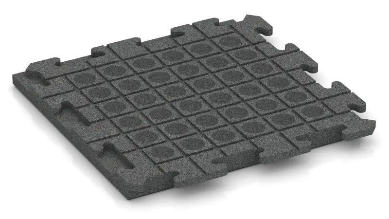 Die Platte besteht aus PU-gebundenem ELT-Gummigranulat, das aus dem Recycling gebrauchter Reifen stammt. Optional ist eine Variante mit einer farbigen Nutzschicht aus durchgefärbtem und UV-beständigem EPDM-Gummigranulat erhältlich. Beide Materialausführungen sind dauerhaft elastisch, robust und umweltfreundlich. Die Oberfläche ist rutschhemmend, trittelastisch und wasserdurchlässig – Regenwasser kann ungehindert in den Untergrund versickern. Dadurch wird der Boden nicht versiegelt, das natürliche Gleichgewicht des Bodens bleibt erhalten und Vegetation oder Baumwurzeln werden nicht beeinträchtigt.