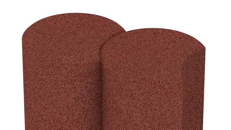 Jede Gummi-Palisade hat einen Durchmesser von 25 cm und ist in den Höhen 40 cm, 60 cm oder 80 cm erhältlich. Der zylindrische Körper besteht aus PU-gebundenem ELT-Gummigranulat (ELT = End-of-Life Tyres) – einem diffusionsoffenen, elastischen und witterungsbeständigen Material. Ein verzinkter Stahlanker ist fest im Inneren der Palisade eingelassen und sorgt für eine stabile Verankerung im Betonfundament. Die seitliche Einbuchtung erleichtert die Montage und Ausrichtung und ermöglicht einen sauberen, bündigen Anschluss weiterer Rundpalisaden.