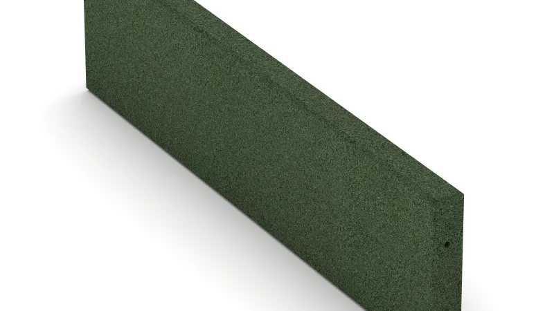 Der Gummi-Randstein ist 100 cm lang, 25 cm hoch und 5 cm stark. Gefertigt wird er aus PU-gebundenem ELT-Gummigranulat (End-of-Life Tires) – einem elastischen, witterungsbeständigen und formstabilen Werkstoff. Die griffige Oberfläche ist leicht offenporig, trittelastisch und stoßdämpfend. Das Material ist beständig gegen Frost, Feuchtigkeit und UV-Strahlung und behält seine Eigenschaften über viele Jahre hinweg.