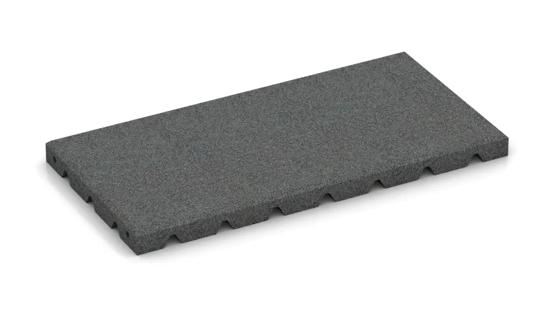 Die halbe Platte ist eine sinnvolle Ergänzung zur Gummigranulat-Platte Typ FS bei der Anlage von Flächen mit rasterkonformen Abmessungen (Länge und Breite jeweils als Vielfaches von 50 cm). Die Platten Typ FS müssen im Halbversatz und unter Zuhilfenahme von Streckverbindern verbaut werden. Das bedeutet also, dass jede zweite Reihe mit einer halben Platten beginnt und mit einer halben Platte endet.