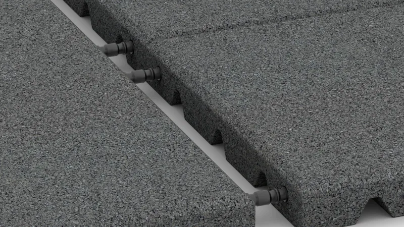 Produkttyp – Merkmale FH (seitliche Steckverbinder | 50 x 25 cm halbe Platte | Kanten mit Fase | bodenseitig ausgeprägtes Drainageprofil)