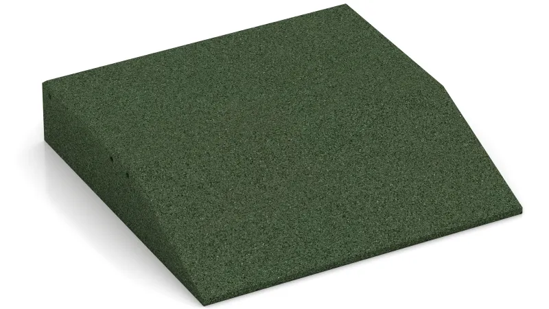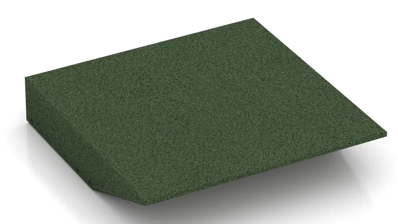 Die Rand-Platte mit einer schräg als Keil ausgeformten Plattenseite ist eine sinnvolle und systemkompatible Ergänzung zur Gummigranulat-Platte Typ FS. Die Rand-Platte wird verwendet, um Stolperkanten zu vermeiden, die am Übergang auf die Gummigranulat-Plattenfläche entstehen, wenn nur ein Teilbereich der Bodenfläche mit Gummigranulat-Platten ausgelegt wird. Durch die Rand-Platte wird also der Niveauunterschied zwischen Bodenfläche und Gummiplatten-Fläche stufenlos ausgeglichen. Unfälle durch Stolpern werden verhindert, ein leichtes Auffahren mit Rollstuhl, Kinderwagen oder Rollator wird ermöglicht.