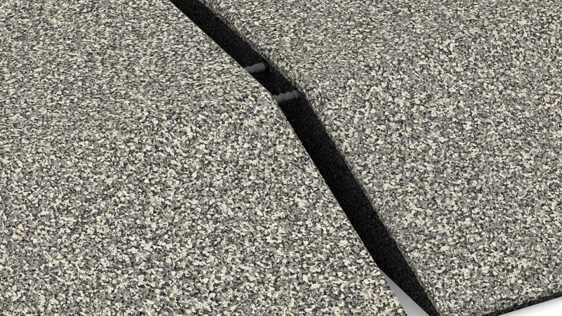 Die Oberfläche aus EPDM-Gummigranulat ist farbstabil und langfristig beständig gegen UV-Strahlung (Sonne).