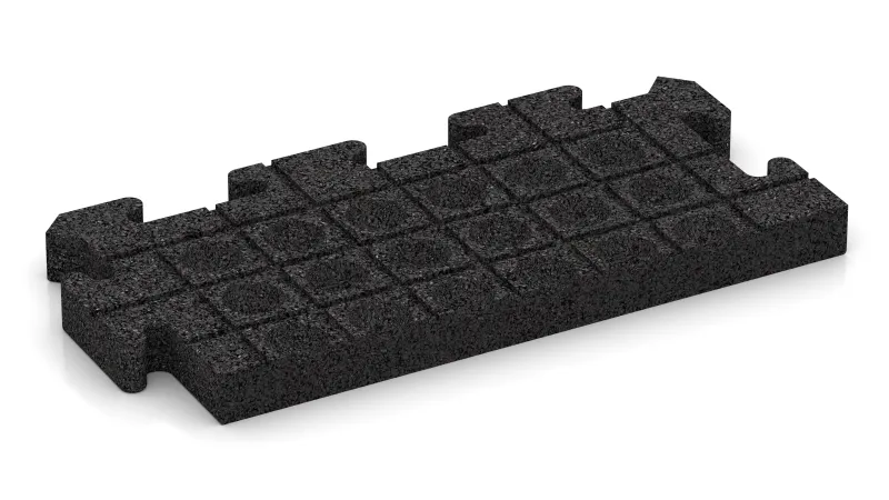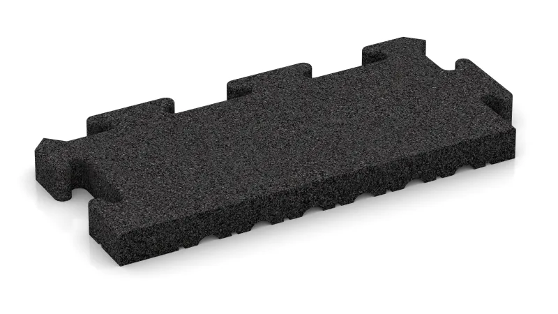 Die Randplatte ermöglicht einen sauberen, geraden Abschluss entlang der Außenkanten einer Plattenfläche. Jede Einheit entspricht einer halben Puzzleplatte: Die Innenseite ist mit der vertrauten Puzzleverzahnung ausgestattet und lässt sich passgenau mit den übrigen Platten verbinden, während die Außenseite eine glatte, gerade Abschlusskante bildet. Damit wird die gesamte Fläche funktional und optisch sauber eingefasst.