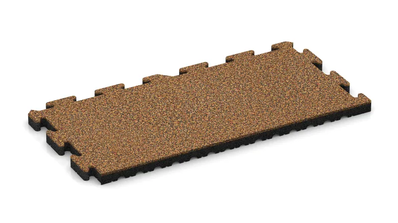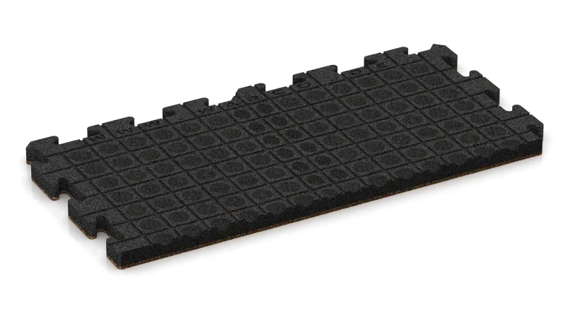 Die Randplatte ermöglicht einen sauberen, geraden Abschluss entlang der Außenkanten einer Plattenfläche. Jede Einheit entspricht einer halben Puzzleplatte: Die Innenseite ist mit der vertrauten Puzzleverzahnung ausgestattet und lässt sich passgenau mit den übrigen Platten verbinden, während die Außenseite eine glatte, gerade Abschlusskante bildet. Damit wird die gesamte Fläche funktional und optisch sauber eingefasst.