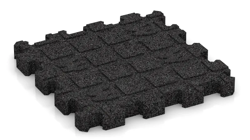 Zwei Plattenseiten verfügen über ein positives Zahnprofil, zwei über ein passendes negatives. Beim Verlegen greifen die Platten von unten formschlüssig ineinander und bilden eine dauerhafte, mechanisch sichere Verbindung. Von oben ergibt sich ein geschlossenes, fugenbündiges Erscheinungsbild mit gleichmäßiger Geometrie, das meist die Form eines klassischen Schachbrettmusters hat.