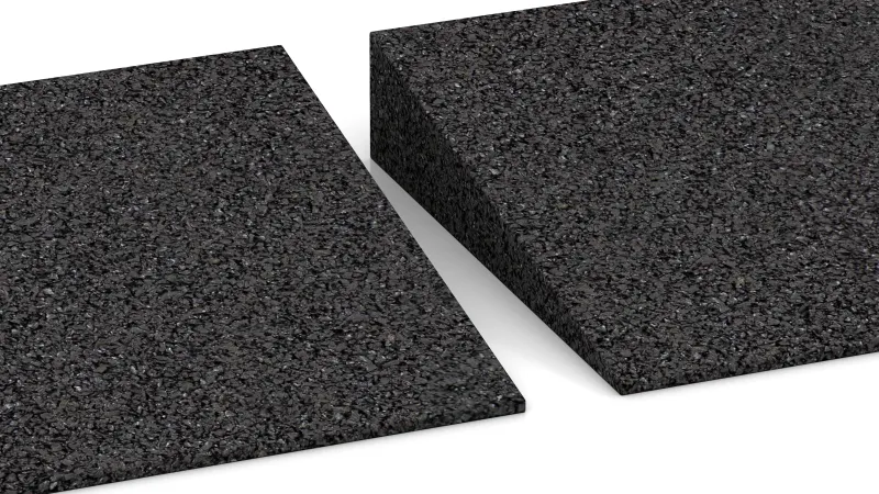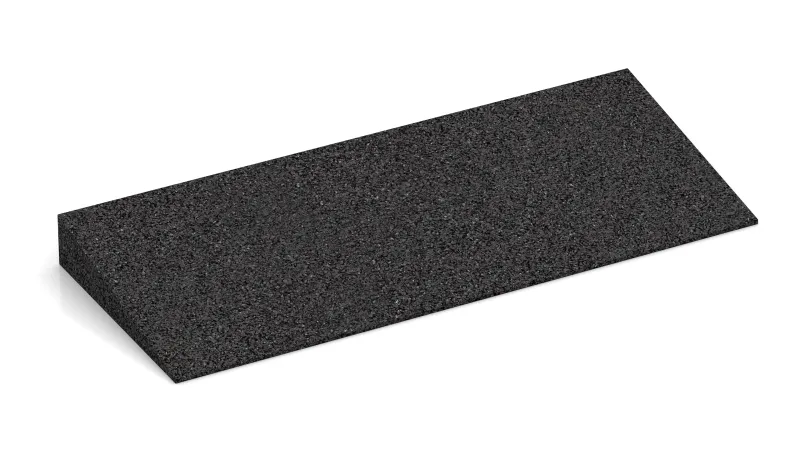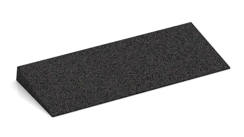 Gefertigt wird die Rampe aus PU-gebundenem Gummigranulat. Dieses Material ist robust, elastisch und dauerhaft rutschhemmend – auch bei Nässe. Dank seiner Struktur wirkt es stoß- und schalldämpfend und reduziert störende Vibrationen. So bleibt die Nutzung sicher und komfortabel, egal ob zu Fuß, mit einem Rollstuhl oder mit Transportwagen.